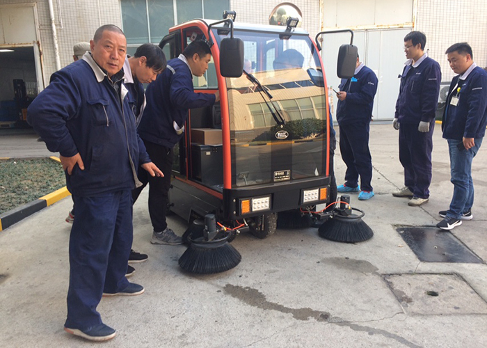 我司給客戶推薦了我司全封閉駕駛式式的掃地車DS10。經過客戶同意后我司于隔天將機器送與客戶。御衛仕全封閉駕駛式DS10它的清掃寬度是大于2100mm的,適合客戶這邊大面積清掃的需求。DS10它配有四..